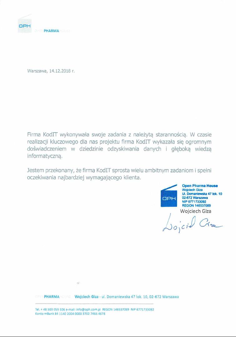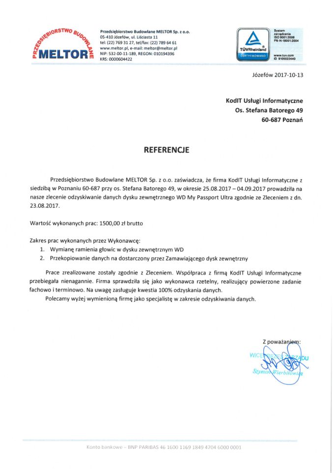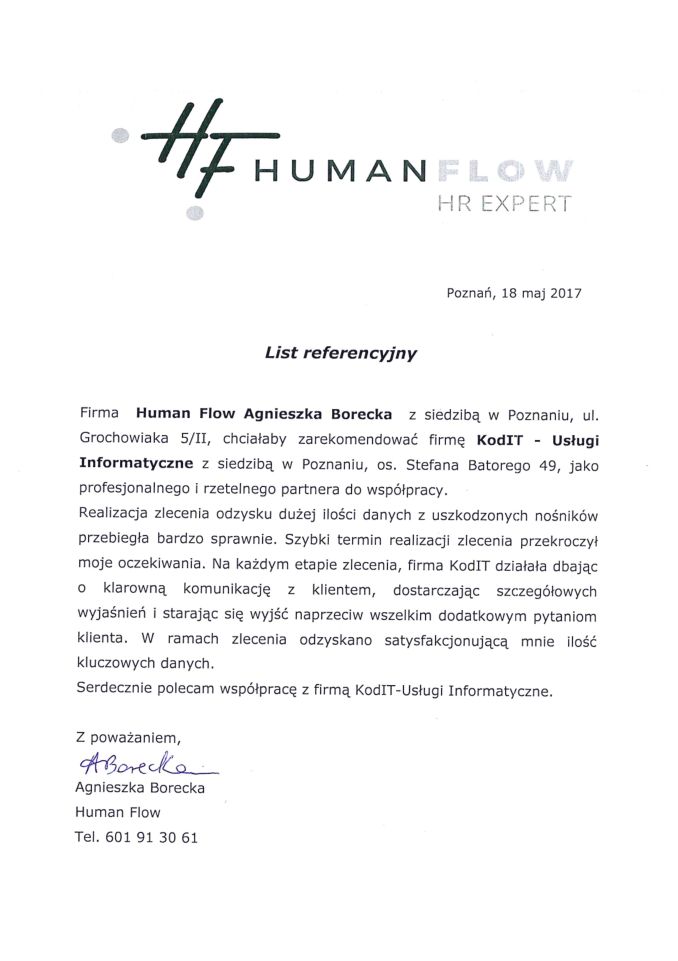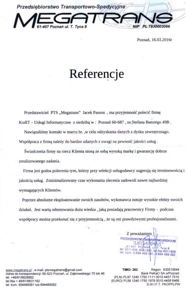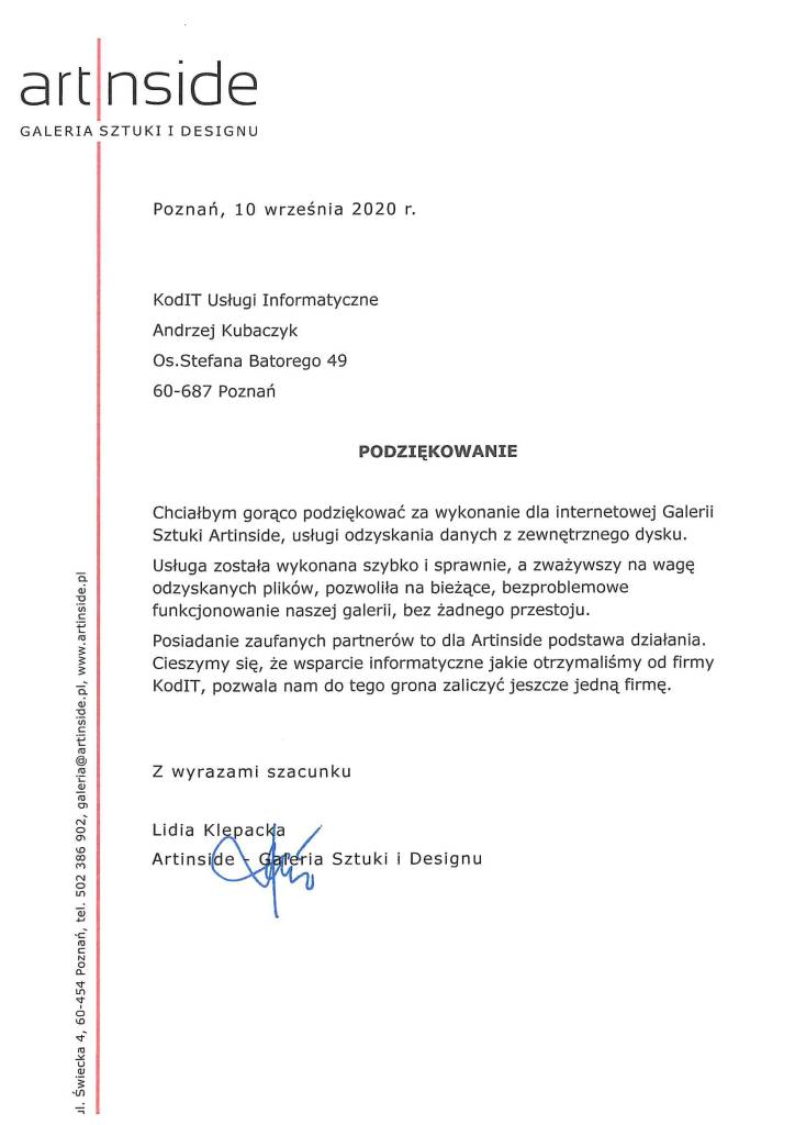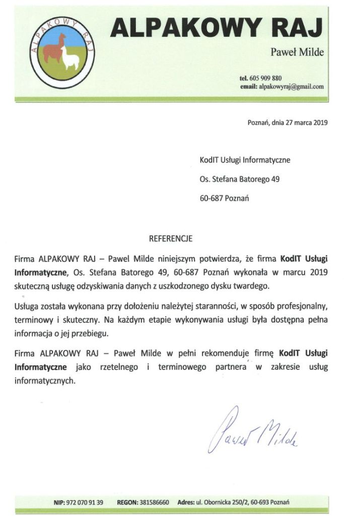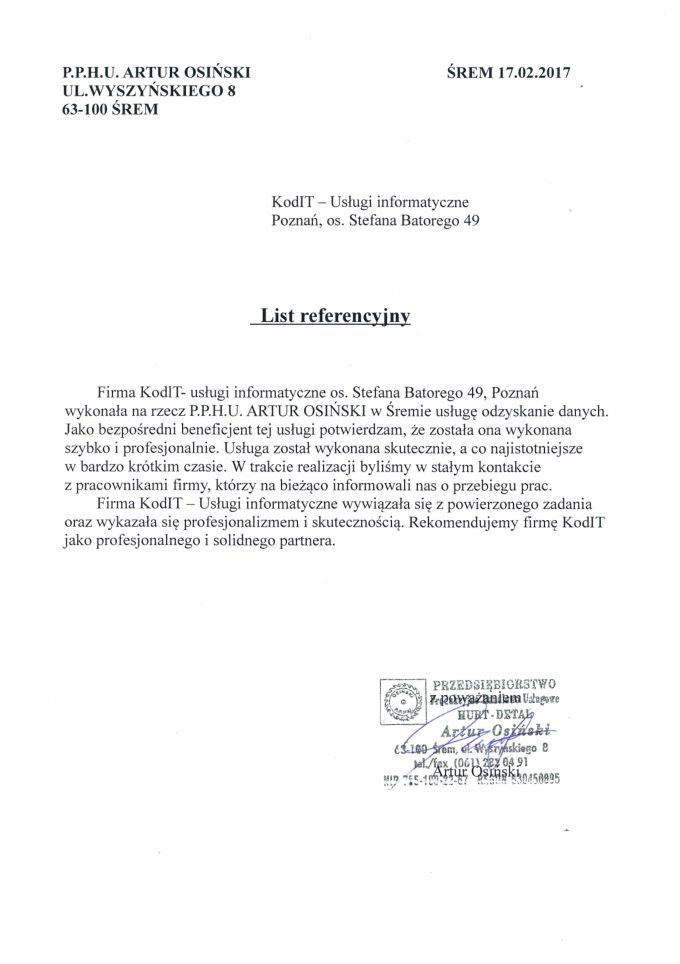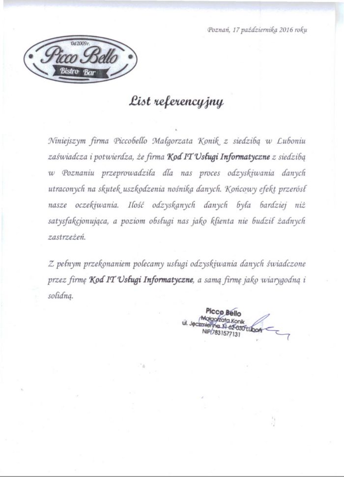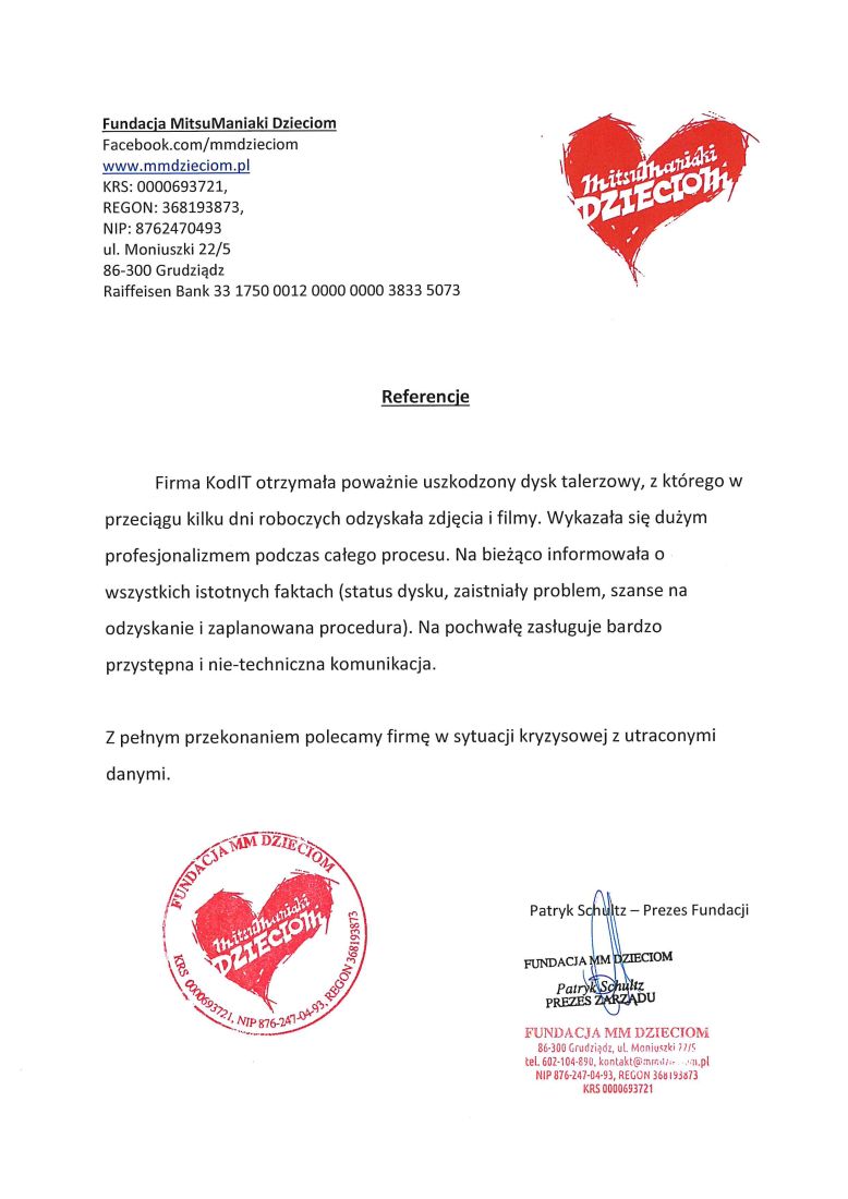 Poniżej zamieszczamy referencje od Klientów, którzy skorzystali z naszych usług odzyskiwania danych. To najlepszy dowód naszej skuteczności.